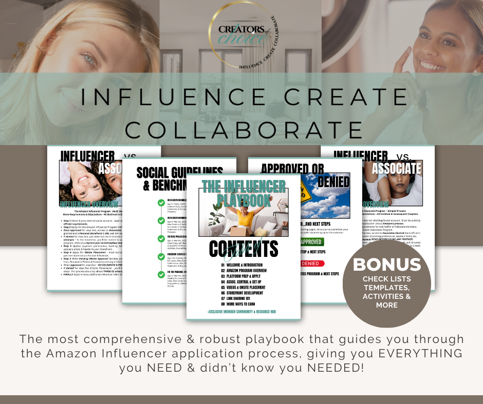 Enjoy FREE Instant Access to the first two chapters of the Creators of Choice Amazon Influencer Playbook & learn exactly how to turn dust into dollars with items just sitting around your house collecting dust!